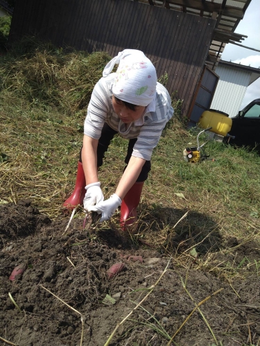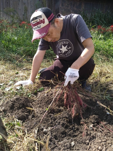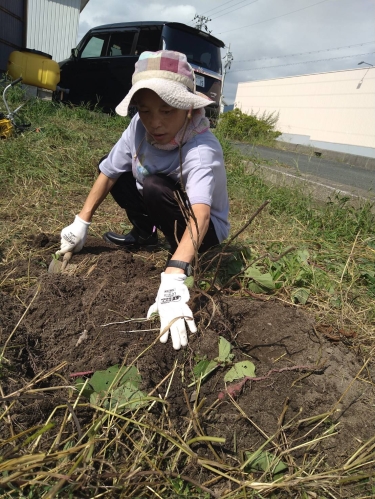 本日は、畑で育てていたサツマイモを掘りにきました。