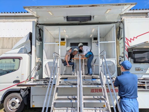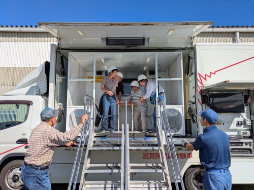 今回は、公園内で起震車体験および消化器の使用体験をさせていただきました。