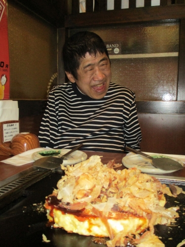 目の前で焼かれた、熱々のお好み焼きをいただきました。